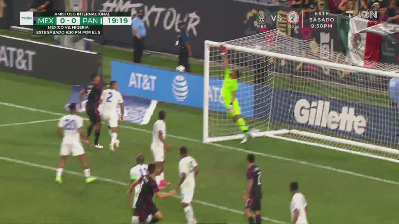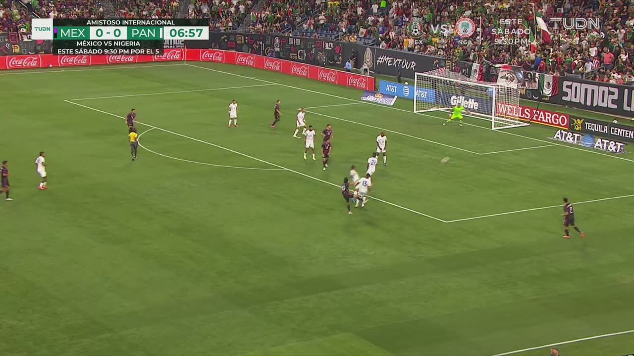 La primera jugada de peligro llegó por la banda derecha cuando Diego Lainez tomó el balón, recortó hacia el centro y disparó de zurda con potencia, pero a un lado del poste panameño.