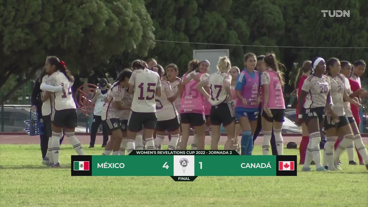 México disputó su segundo partido de la Revelaciones Cup como anfitrionas en donde vencieron 4-1 a Canadá con doblete de Alice Soto y anotaciones de Giselle Espinoza y Layla Sirdah.