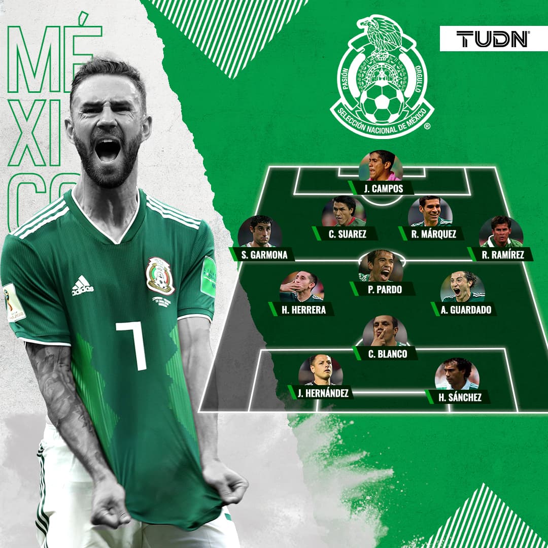 Miguel Layún colocó a Jorge Campos en la portería, en la defensa puso a Salvador Carmona de lateral derecho, Rafael Márquez y Claudio Suárez en la zaga central y Ramon Ramírez por izquierda".