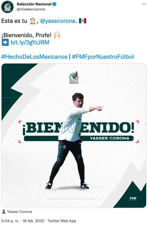 Con estos datos es como presentan a Yasser Corona como parte de la estructura de Selecciones Nacionales.