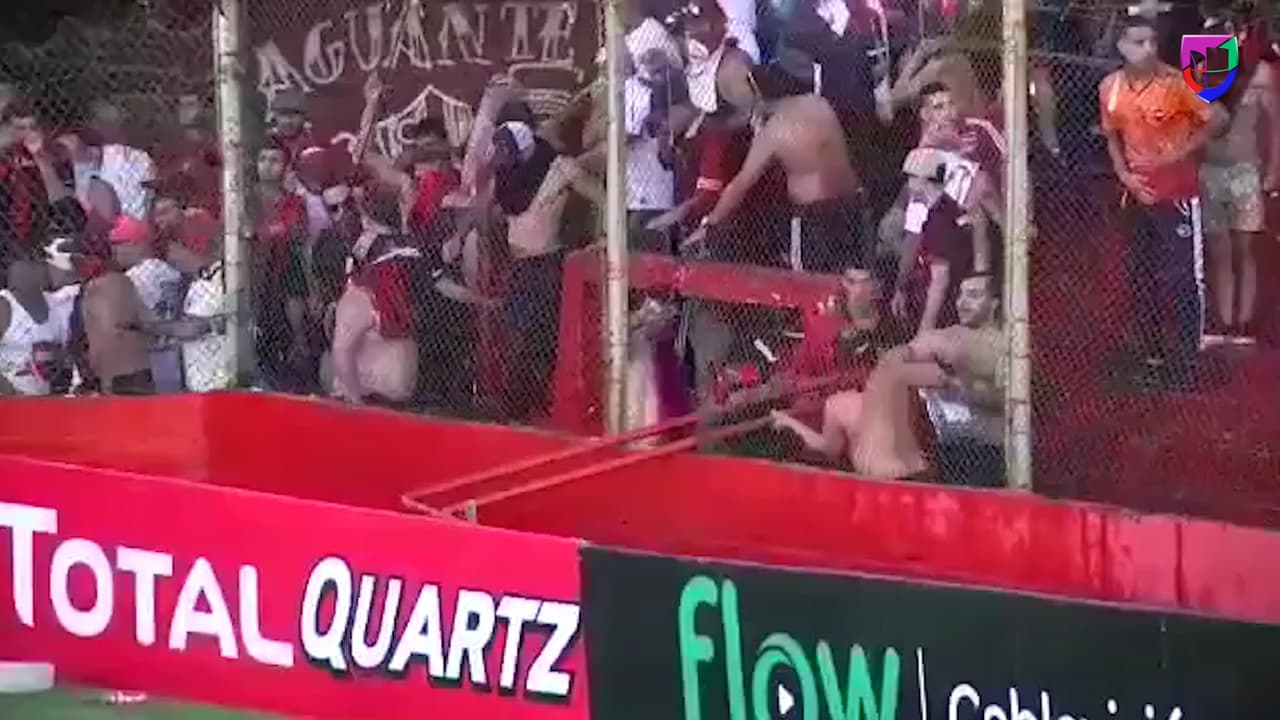 El enfrentamiento entre hinchas y policías dejó un agente herido y, tras lo sucedido, el árbitro Lucas Novelli dio por finalizado el partido a falta de un par de minutos de juego por orden de la fuerza policial.