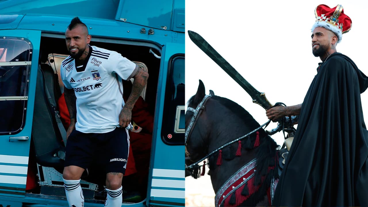 Arturo Vidal fue presentado ante la afición del Colo Colo en una gran fiesta en el estadio Monumental donde el futbolista chileno sorprendió al llegar en un helicóptero y dar la vuelta olímpica en un elegante caballo como todo un rey.