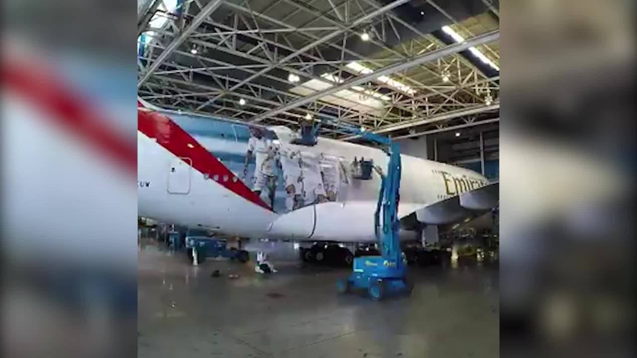 El equipo Merengue dio a conocer el increíble A380, personalizado con los jugadores del equipo, que usarán para emprender el vuelo a los Emiratos Árabes Unidos.