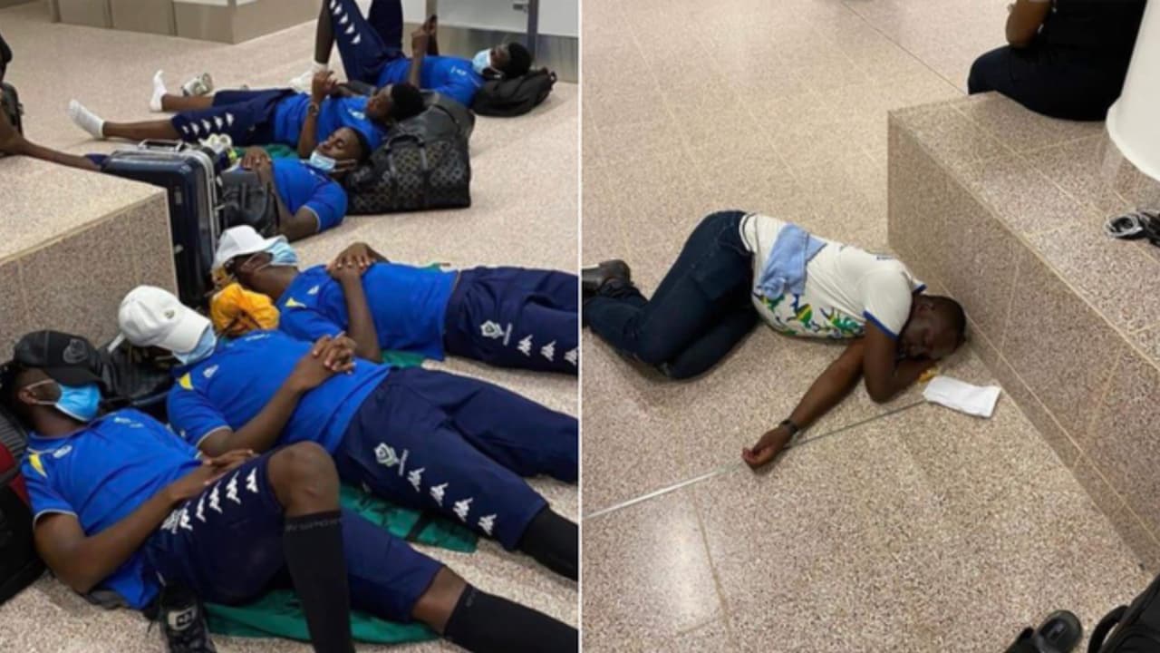 Pierre-Emerick #Aubameyang and his Gabon team-mates were forced to spend the night sleeping on the airport floor ahead of their vital Africa Cup of Nations qualifier against #Gambia. pic.twitter.com/fHq22H4bCG