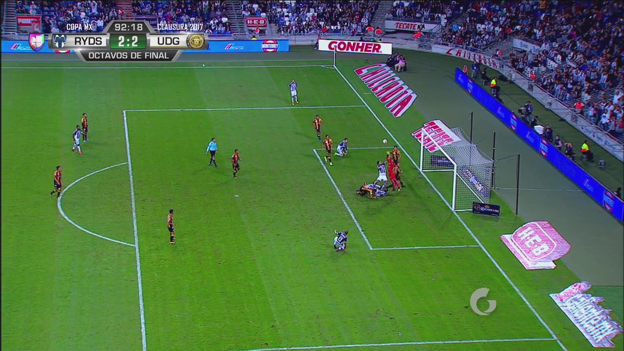 El atacante de Monterrey no conectó de forma adecuada el esférico y se perdió el gol.