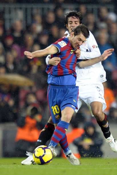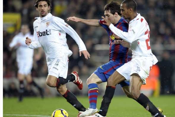 Getty ImagesEl Sevilla aguantó bien al Barcelona durante todo el primer tiempo.