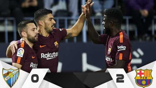 Barcelona demostró que no depende de Lionel Messi, ausente por el nacimiento de su tercer hijo, al vencer 2-0 a domicilio al Málaga, manteniendo su paso invicto en el certamen español.