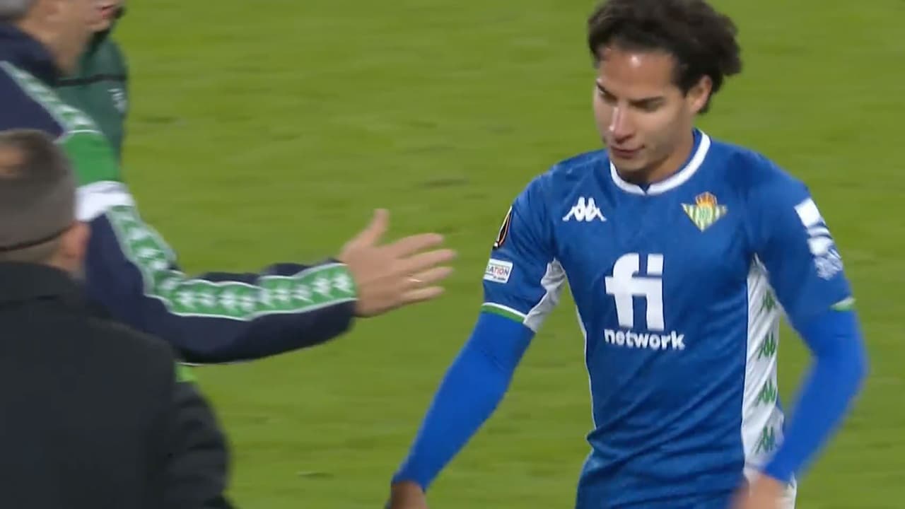 Al mexicano no le gustó nada ser sacado de cambio con Betis en Europa League.