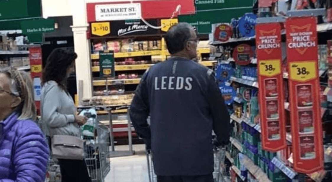 🔘 Marcelo Bielsa, de compras en un supermercado de Inglaterra con la ropa del Leeds pic.twitter.com/u5e2lLZHks