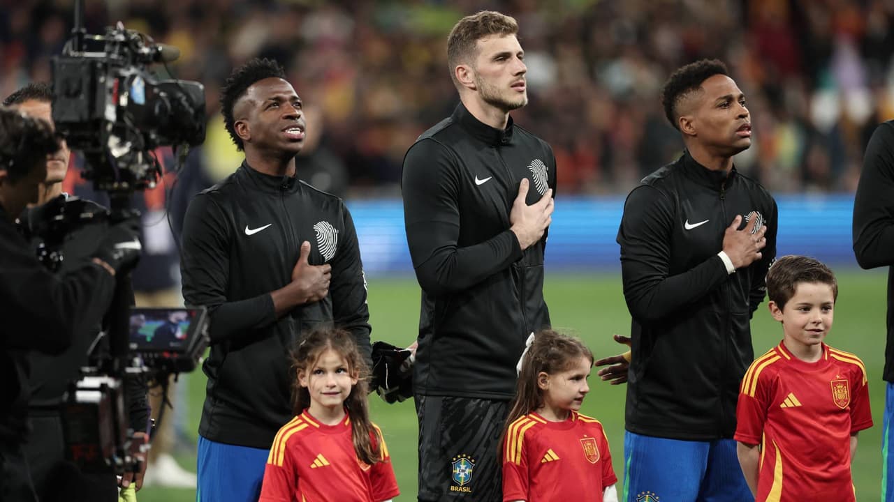 La Canarinha jugó en el Santiago Bernabéu bajo el lema “una piel, una identidad” con una chamarra negra y el escudo de la CBF como huella digital.