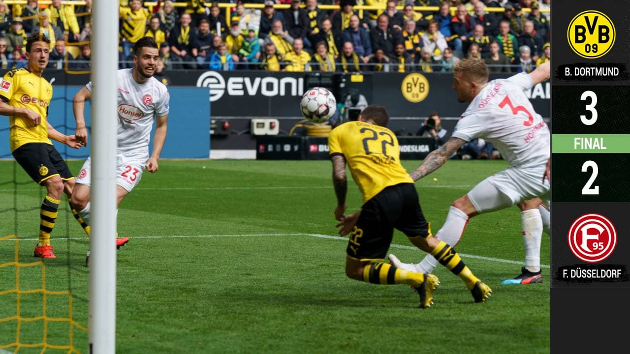 Juego de ida y vuelta. Düsseldorf también quería ganar para intentar cerrar el torneo en los primeros 10 de la tabla, aunque esto le fue imposible. Los goles no pararon, incluso, en el tiempo añadido.