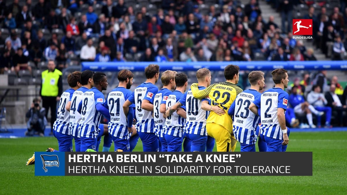 La Bundesliga alemana elogió, a través de su cuenta en twitter, el gesto del Hertha Berlín, cuyo equipo se arrodilló ayer sobre el campo antes del inicio del partido, tal como han hecho deportistas en Estados Unidos a modo de señal contra el racismo.