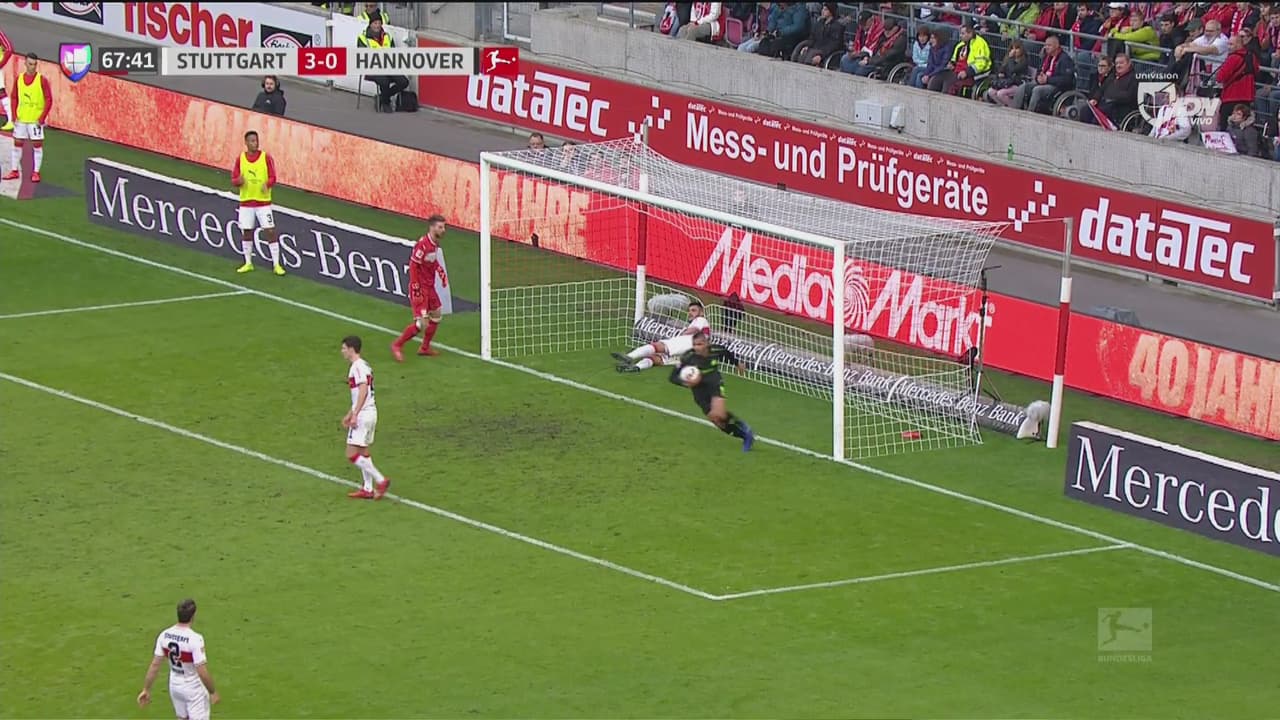 Gran jugada del cuadro visitante. Pase filtrado desde el medio campo, centro por derecha y cabezazo de Jonathas para marcar el 3-1.