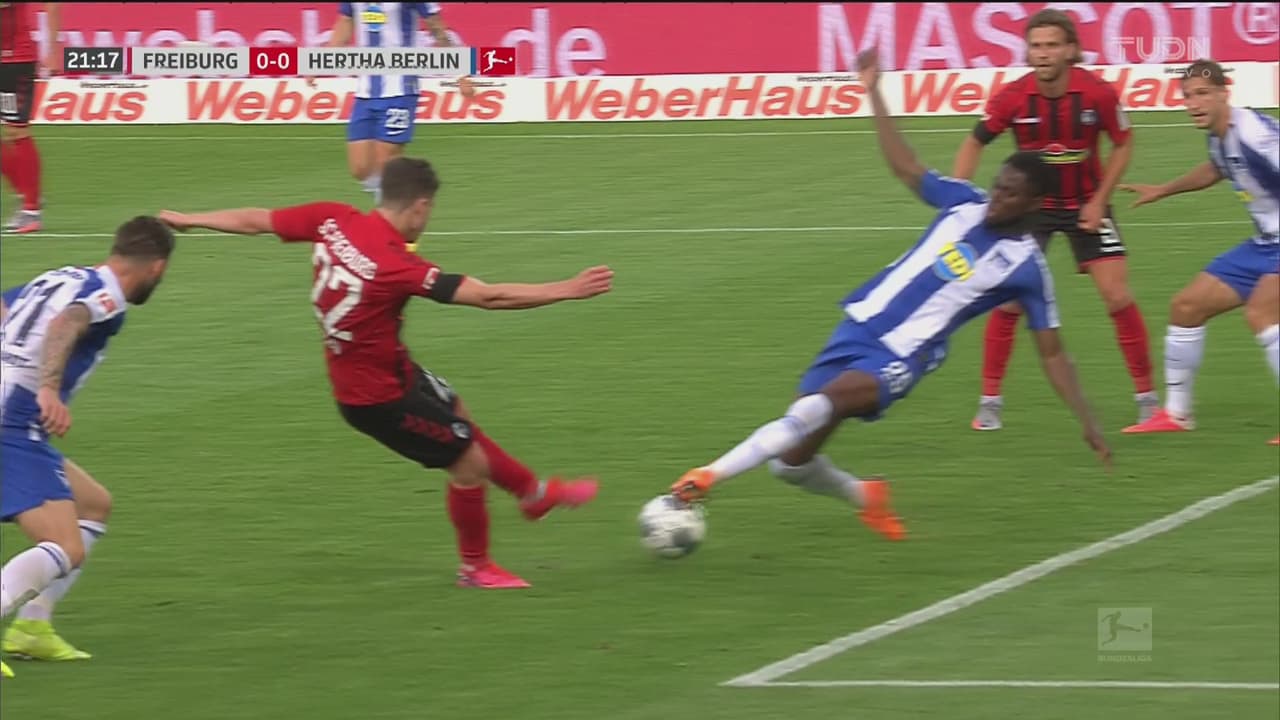 Pareciera que el húngaro había bajado el balón como con un guante en el área chica, se disponía a fusilar, pero Jordan Torunarigha barrió de último momento al 21’.