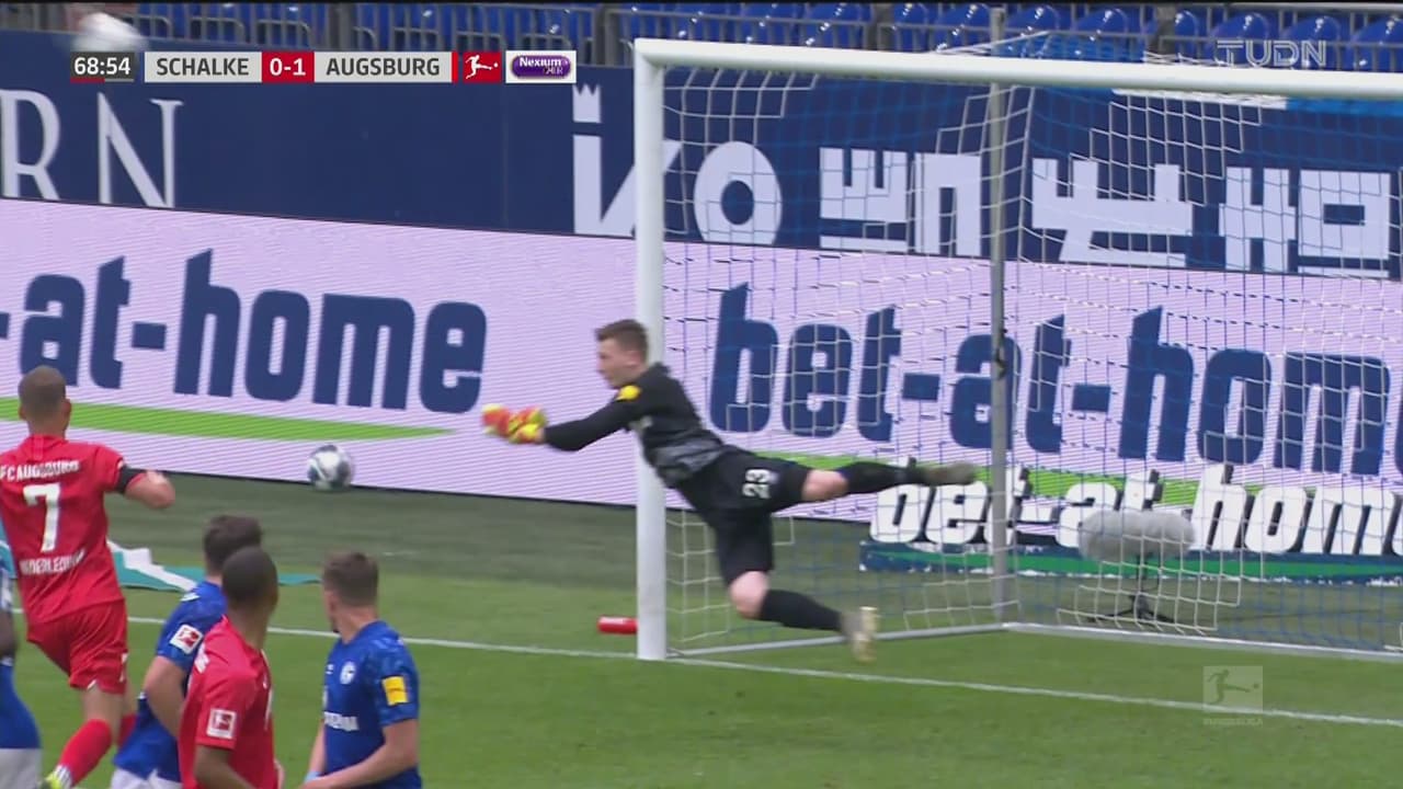 Augsburg intentó aprovechar de nueva un tiro libre para incrementar la ventaja, pero el arquero se lanza para la foto.