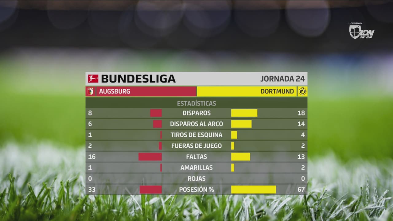 Borussia Dortmund sorprende al caer con el Augsburg. Los todavía líderes de la Bundesliga mantienen su ventaja de tres puntos, pero el Bayern podría igualarlos si derrota al Gladbach.
