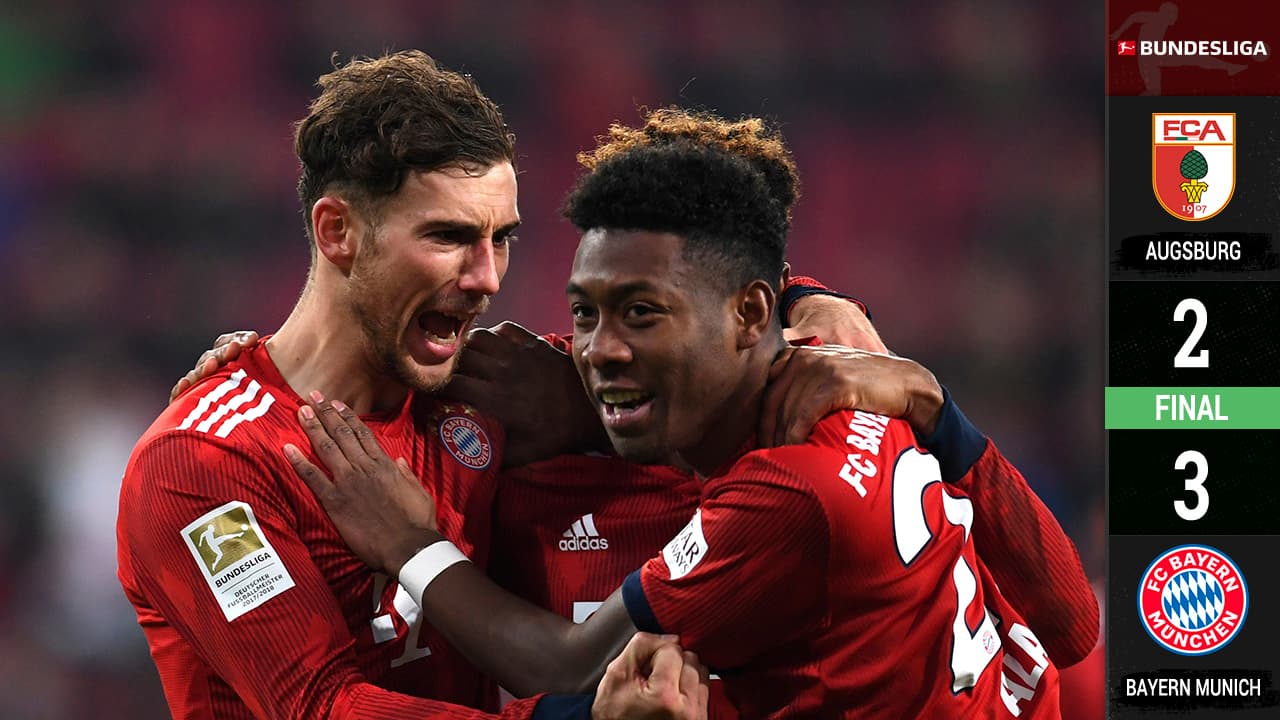En dos ocasiones el cuadro bávaro se sobrepuso a la desventaja ante el Augsburg y, con un doblete y una asistencia de Kingsley Coman, logró un refrescante triunfo que los deja a dos puntos del líder.