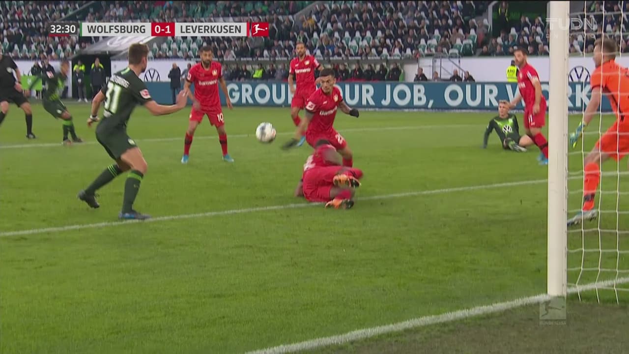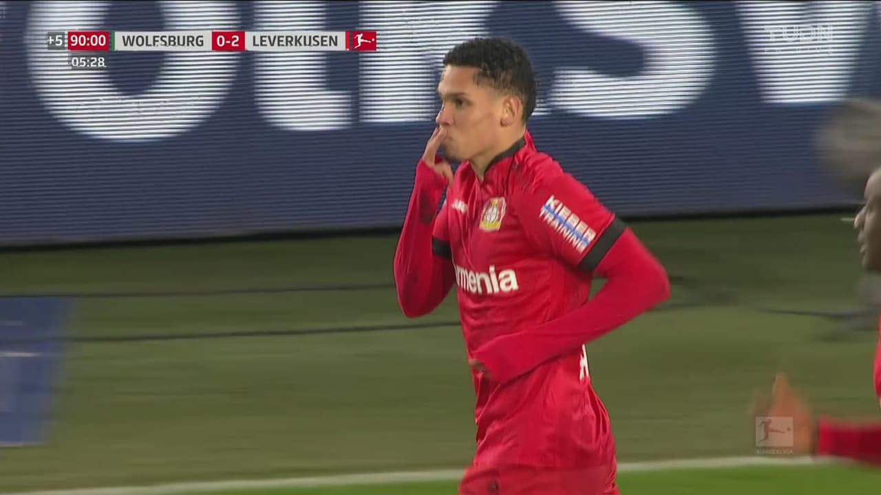 Casi al final del partido, el Bayer inició un contragolpe para que Paulinho cruzara la mitad de la cancha tras un pase preciso, ganar el mano a mano ante Pavao Pervan y poner el 2-0 definitivo sobre el Wolfsburg.