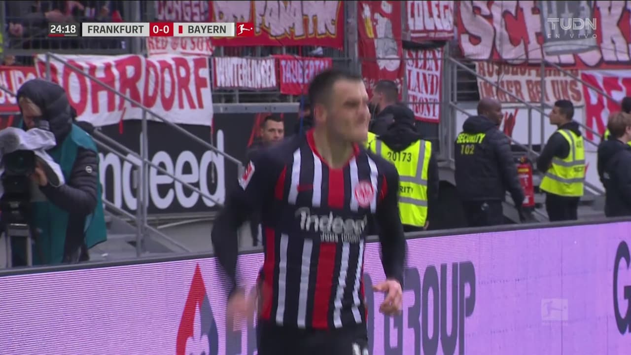 El primer gol del Eintracht llegó en el 25, por intermedio de Kostic, que aprovechó un rebote tras un disparo de Gonzalo Paciencia que había pegado en el cuerpo de Alfonso Davies. Luego, en el 34, Sow aumentó la cuenta, aprovechando un centro de Kostic desde la izquierda.