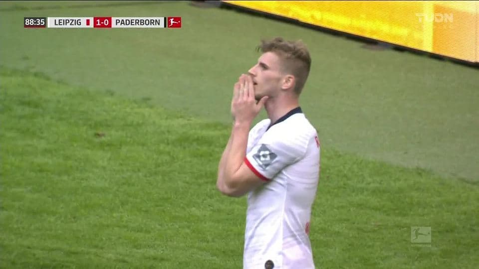 ¡CERCA!. Timo Werner disparó que se estrella en el poste.