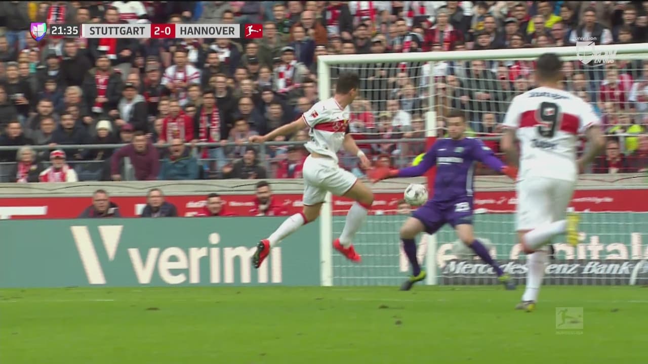 Gómez entró solo al área del Hannover y no pudo conectar bien con el balón que terminó tapado por el guardameta Esser.