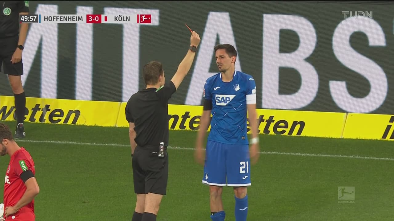 ¡Fuerte entrada! Hoffenheim se queda con 10 hombres por la patada de Benjamin Hübner