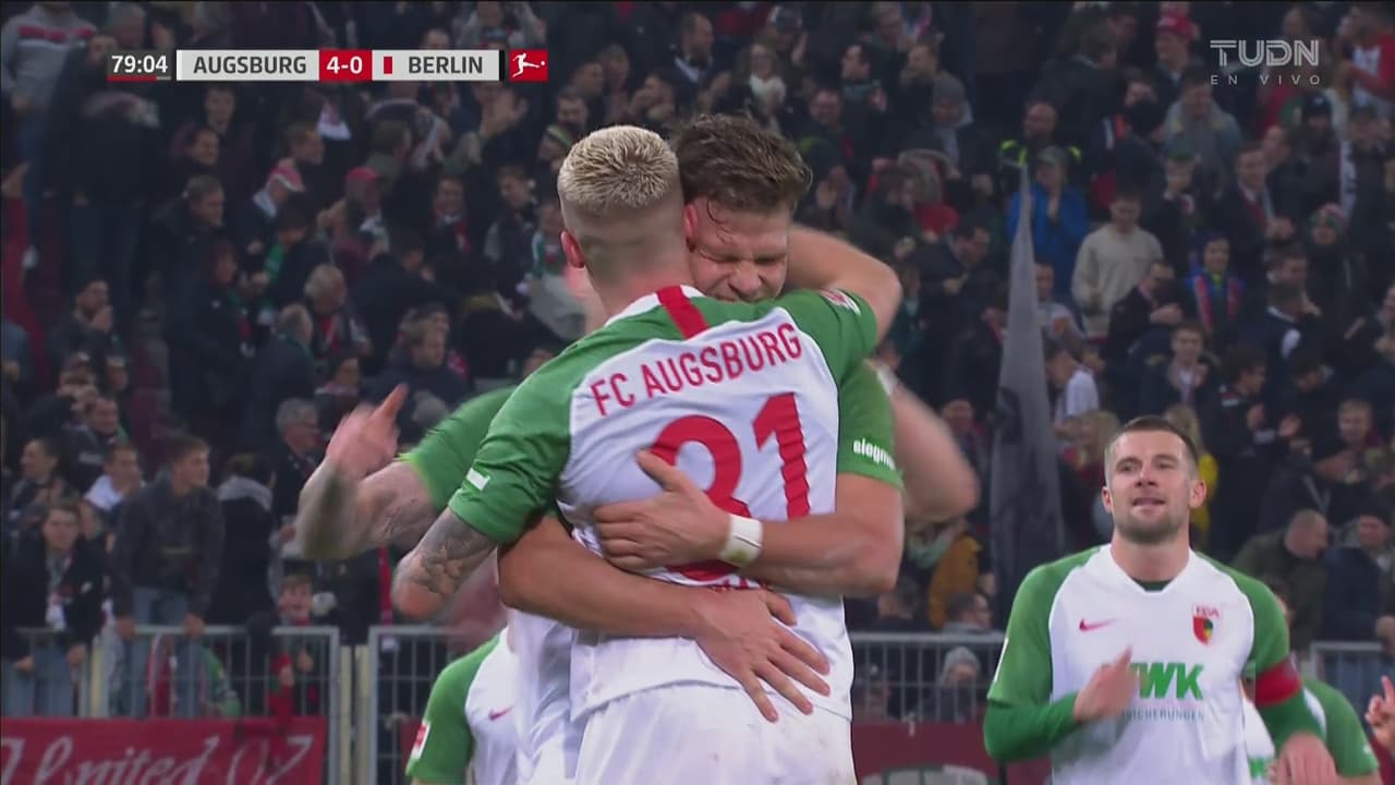 Gran asistencia en jugada a balón parado y una definición sin ángulo a primer poste del mediocampista del Augsburg.
