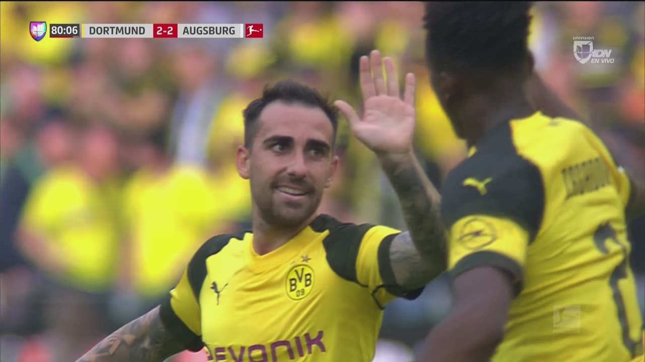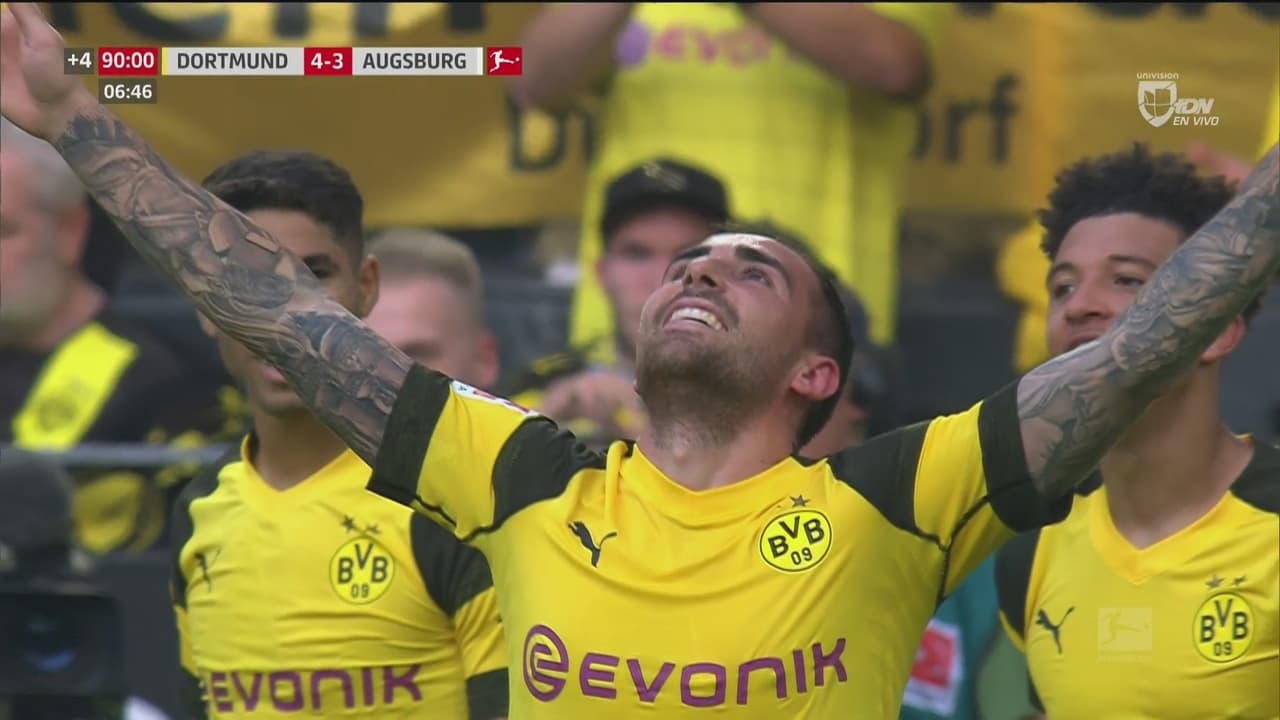 Fue una tarde épica en el Signal Iduna Park, de esas que se quedarán en la retina por mucho tiempo, el Augsburgo le estaba dando una lección al Borussia Dortmund, los visitantes llegaron a ponerse dos veces al frente en el marcador, pero entonces, Paco Alcácer salió de la banca al 60’ para lograr un triplete de goles, el último ya en el descuento. Era el 95’ cuando el español sello un 4-3, de tiro libre, para la historia. Heroico.