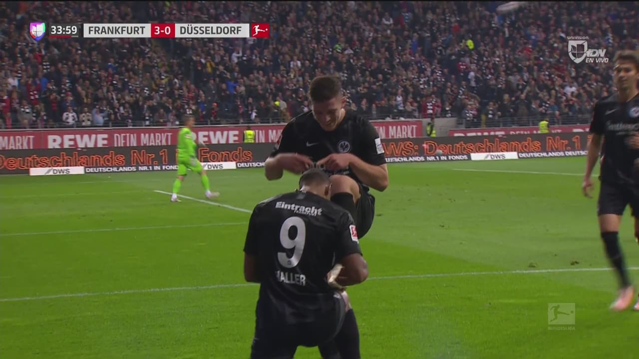 Una acción que quedó en una mera anécdota ante la voracidad del serbio Luka Jovic, de tan sólo 20 años, que se adueño del partido con los cinco tantos que anotó al Fortuna Düsseldorf.