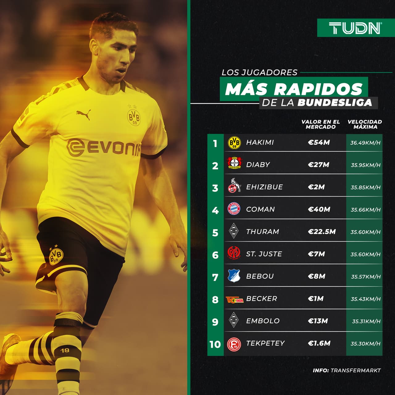 Con la vuelta a la normalidad en la liga de Alemania, muchas estadísticas salen a la luz, donde la de quiénes son los más veloces con Achraf Hakimi, del Borussia Dortmund; y Moussa Diaby, del Bayer Leverkusen.