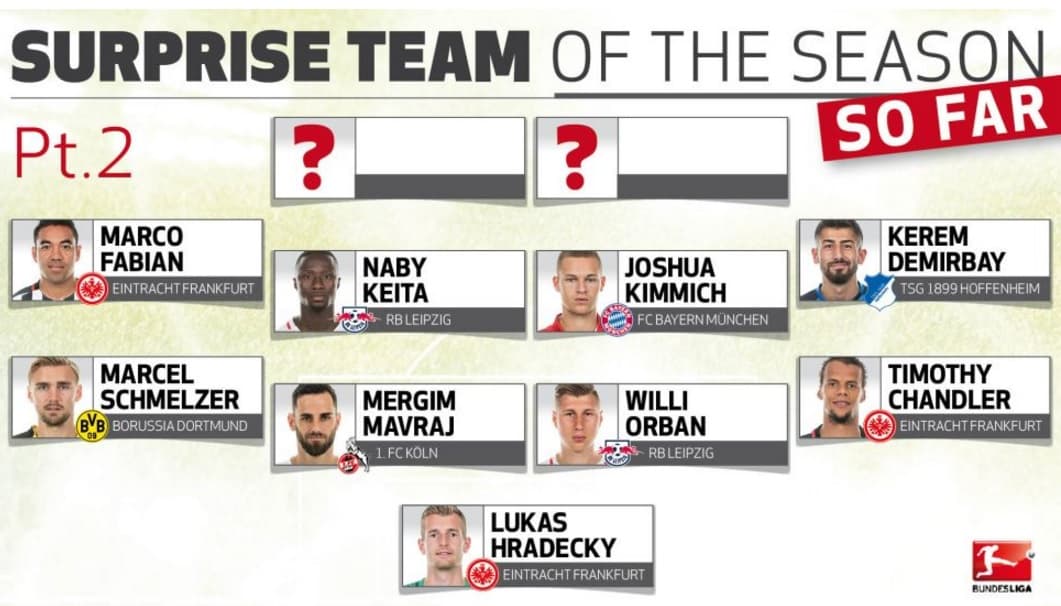 Así como los defensas Marcel Schmelzer (Borussia Dortmund), Mergim Mavraj (Colonia), Willi Orban (Leipzig), Timothy Chandler (Eintracht Frankfurt) y el portero Lucas Hradecky (Eintracht Frankfurt). Los últimos dos futbolistas compañeros de equipo del mexicano.