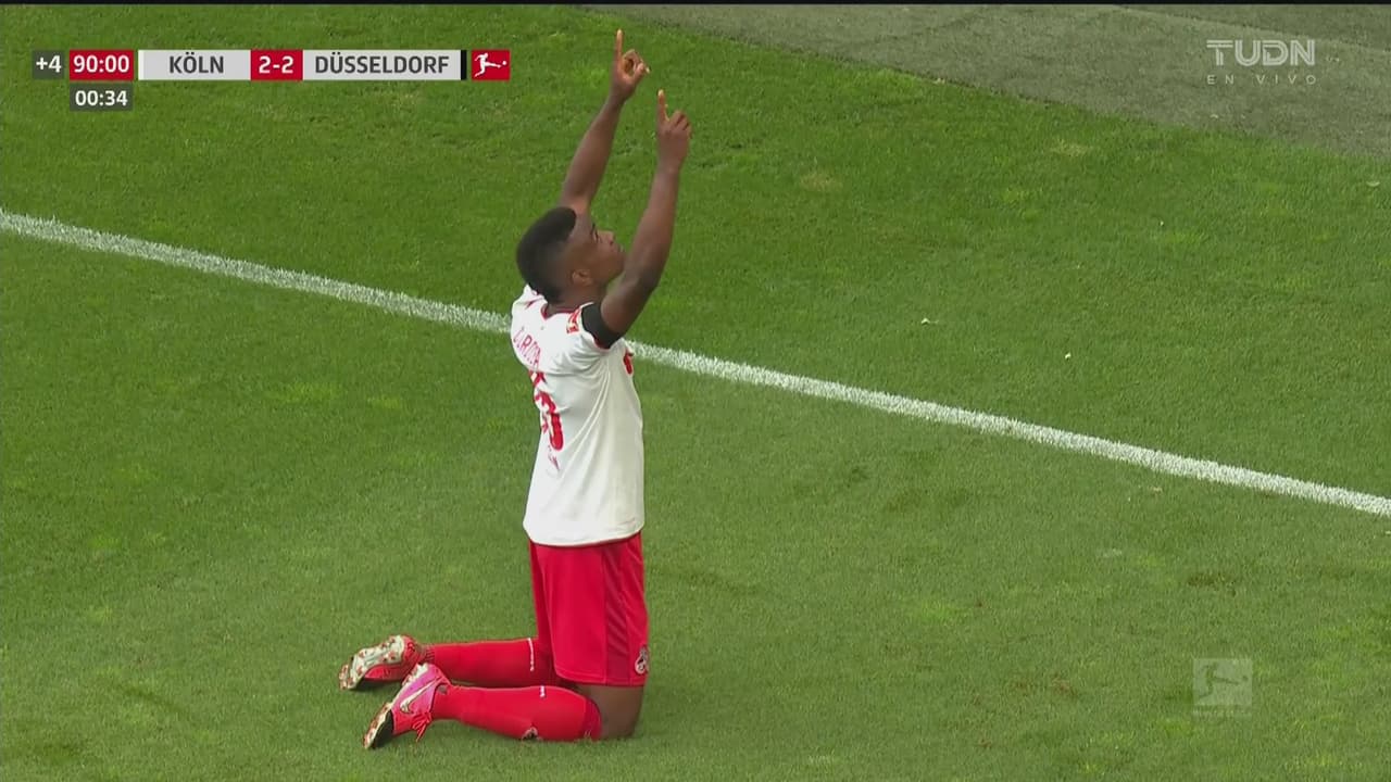 El colombiano sorprende a todos dentro del área y el Köln regresa de una desventaja de dos anotaciones en un par de minutos.