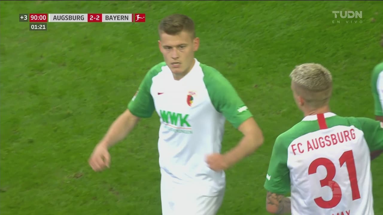 El recién ingresado envía la pelota al fondo de la red para el empate 2-2 del Augsburg.