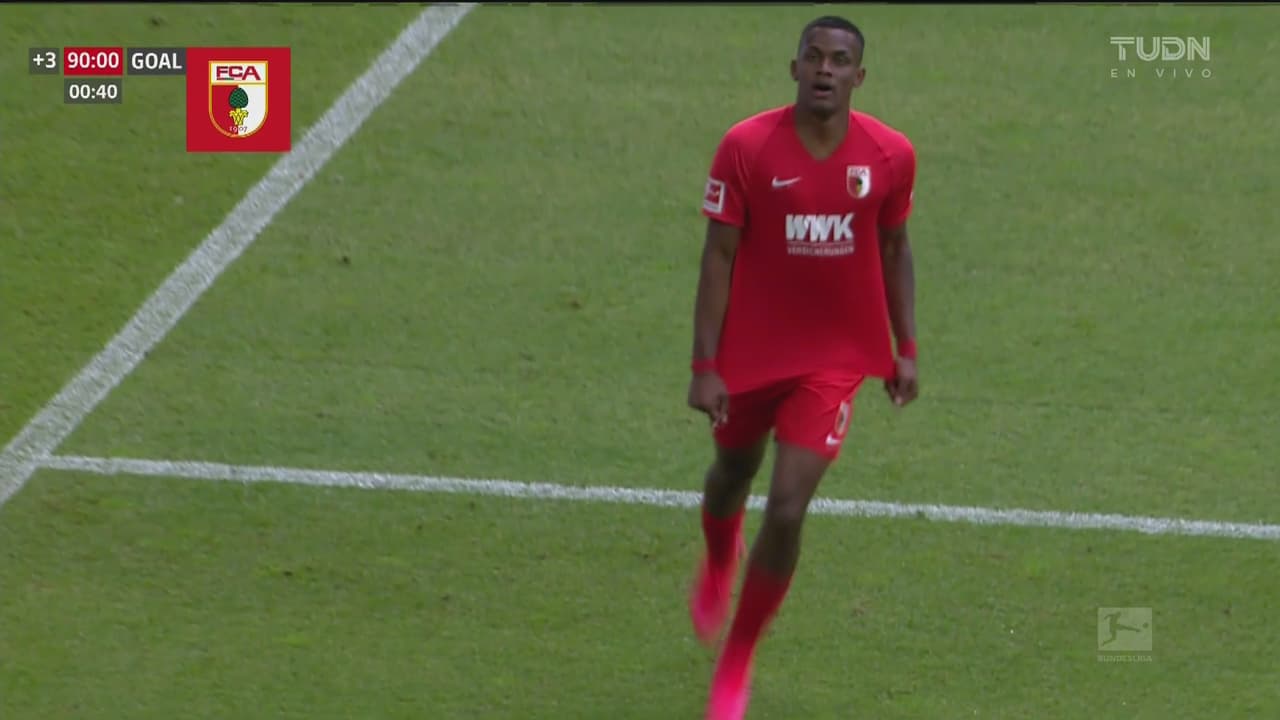 El venezolano aprovechó el 'regalito' para quitarse al portero y celebrar la victoria del Augsburg.