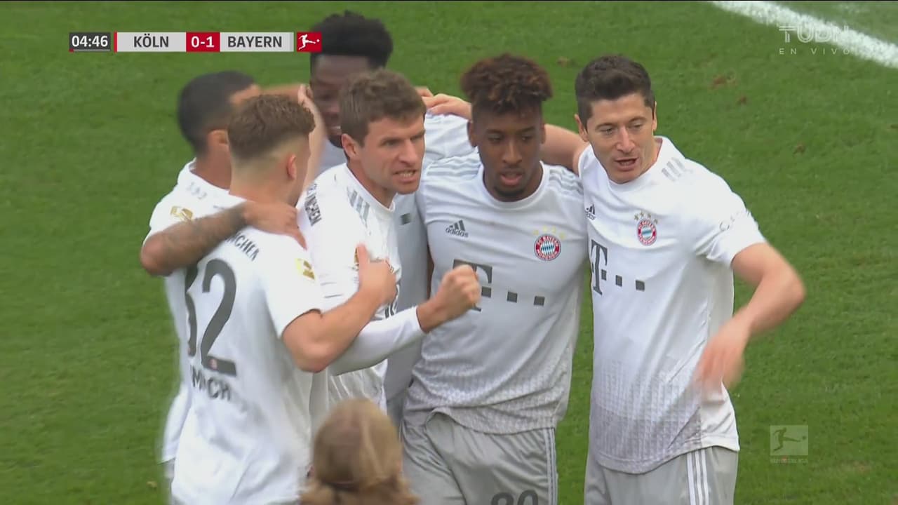 Con un trallazo dentro del área, Robert Lewandowski abrió la pizarra al 3’ y dos minutos después Kingsley Coman culminó una buena jugada colectiva para poner contra la lona a un Köln desconcentrado por lo que estaba pasando en el RheinEnergieStadion.