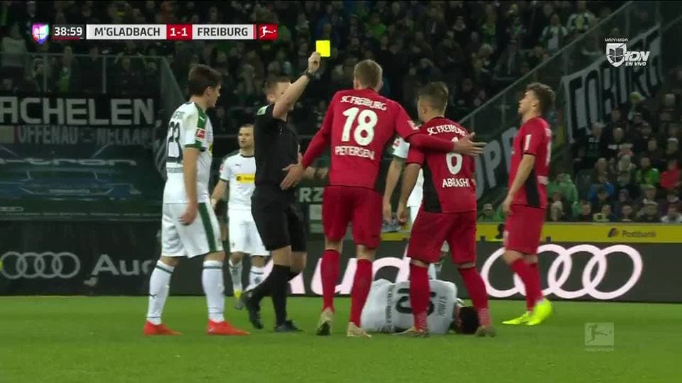 Tarjeta amarilla. El árbitro amonesta a Amir Abrashi de Sport-Club Freiburg