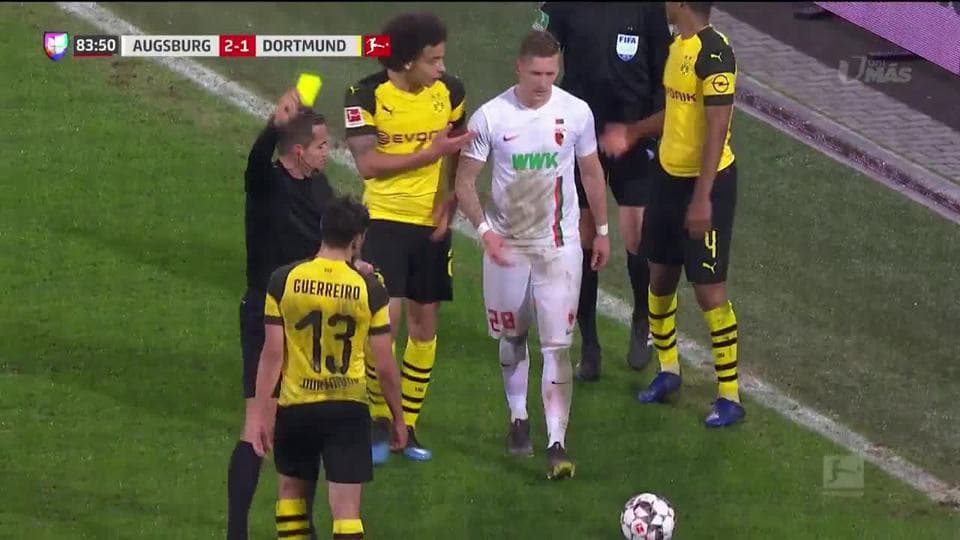 Tarjeta amarilla. El árbitro amonesta a André Hahn de FC Augsburg