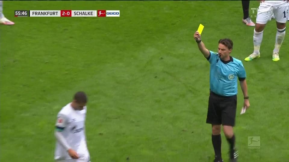 Tarjeta amarilla. El árbitro amonesta a Can Bozdogan de FC Schalke 04 on June 17, 2020