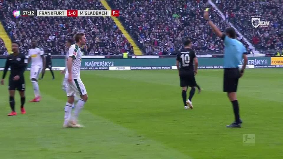 Tarjeta amarilla. El árbitro amonesta a Christoph Kramer de Borussia Mönchengladbach