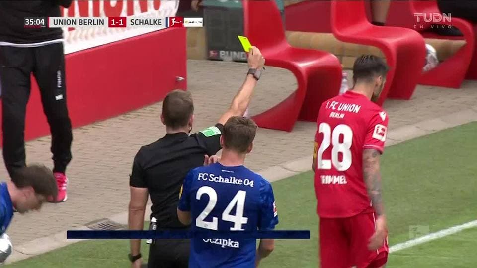 Tarjeta amarilla. El árbitro amonesta a Christopher Trimmel de 1. FC Union Berlin