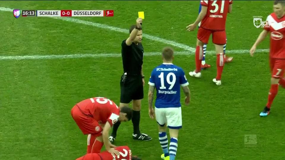 Tarjeta amarilla. El árbitro amonesta a Guido Burgstaller de FC Schalke 04 on March 2, 2019