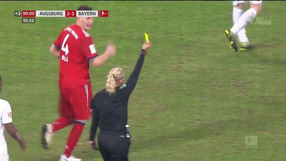 Tarjeta amarilla. El árbitro amonesta a Javi Martínez de FC Bayern München on February 15, 2019
