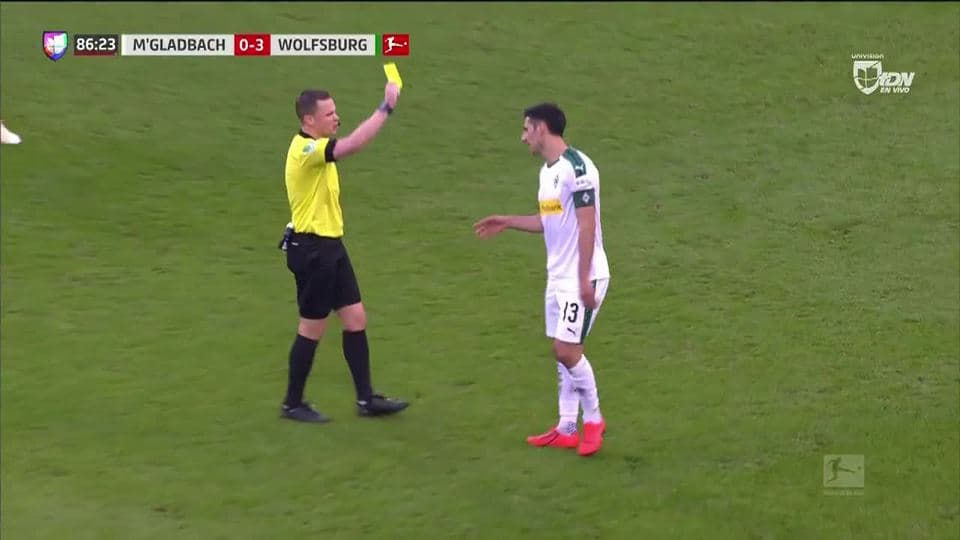 Tarjeta amarilla. El árbitro amonesta a Lars Stindl de Borussia Mönchengladbach