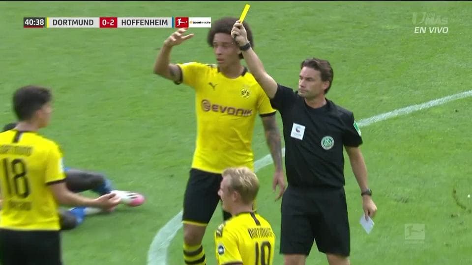 Tarjeta amarilla. El árbitro amonesta a Leonardo Balerdi de Borussia Dortmund on June 27, 2020