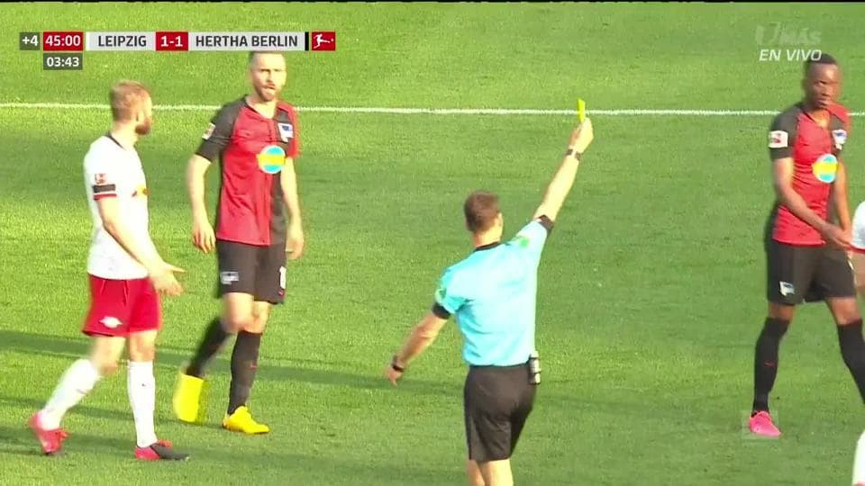 Tarjeta amarilla. El árbitro amonesta a Marcel Halstenberg de RB Leipzig
