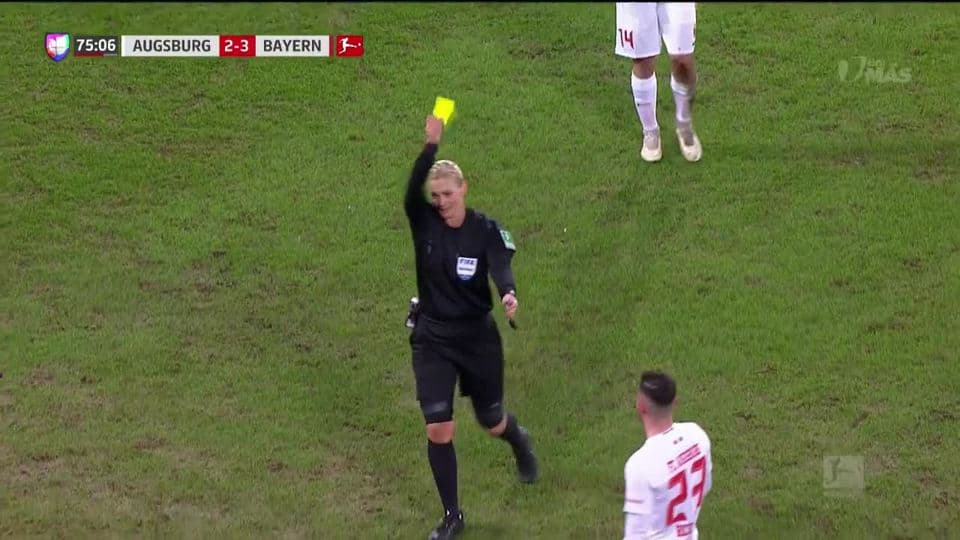 Tarjeta amarilla. El árbitro amonesta a Marco Richter de FC Augsburg on February 15, 2019