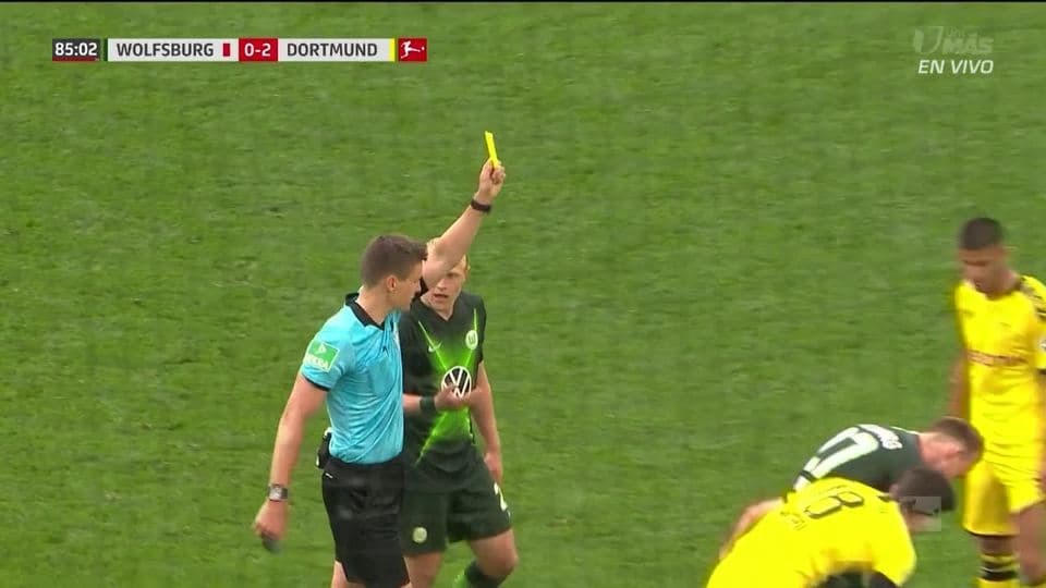Tarjeta amarilla. El árbitro amonesta a Maximilian Arnold de VfL Wolfsburg