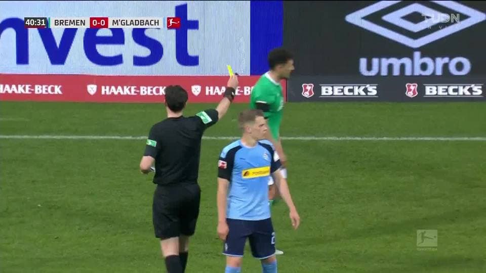 Tarjeta amarilla. El árbitro amonesta a Milos Veljkovic de SV Werder Bremen