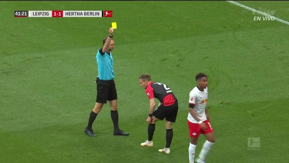 Tarjeta amarilla. El árbitro amonesta a Peter Pekarík de Hertha BSC on May 27, 2020