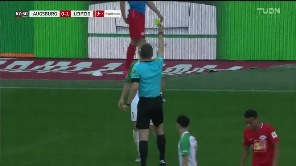 Tarjeta amarilla. El árbitro amonesta a Philipp Max de FC Augsburg on June 27, 2020